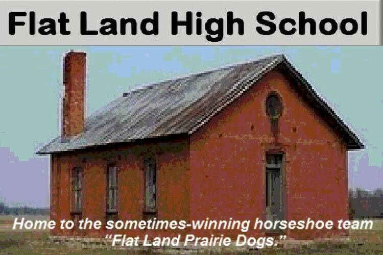 Nestled just a mile outside the bustling metropolis of Corn Row, Flat Land High proudly houses the sometimes-winning horseshoe team, the legendary Flat Land Prairie Dogs. Built in 1907 with bricks generously donated from citizens' abandoned well houses, this school is a true testament to community spirit!